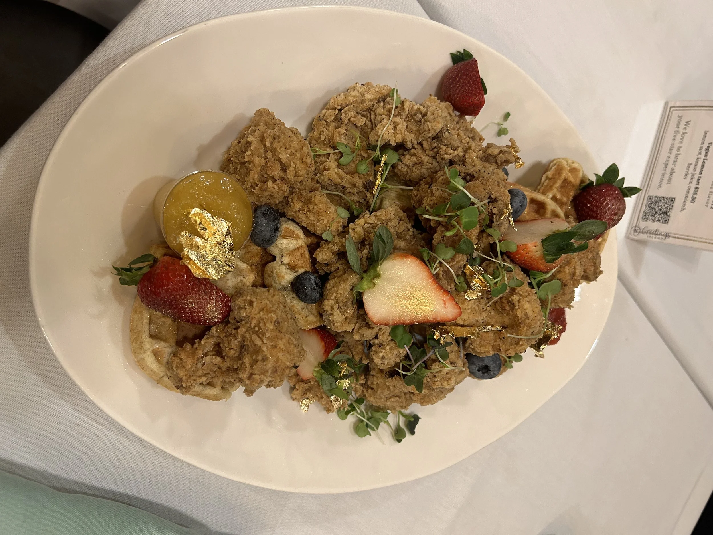 Christmas Shop › Vegan Chicken and Waffles Image 1 of 2 Image 2 of 2 Vegan Chicken and Waffles from $55.00 Size: Feeds 3-5Vegan Chicken: Oyster mushrooms and Cauliflower, mixed berries syrup, fresh fruits Box: Select Box Gluten-Free With Gluten Quantity: Add To Cart Added! Size: Feeds 3-5Vegan Chicken: Oyster mushrooms and Cauliflower, mixed berries syrup, fresh fruits Reviews Reviewer Name Review Date Star Rating Description Posted on Etsy Product Show More